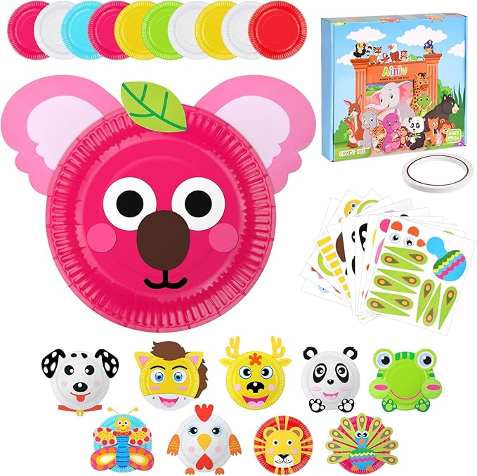 ARTS ET ARTISANAT POUR ENFANTS (3 à 12 ANS) : Cet ensemble comprend 10 cartes à motifs d'animaux, 10 assiettes en papier colorées, 1 ruban adhésif double face et un coffret cadeau. Les couleurs vives et les motifs mignons attirent l'attention des enfants et stimulent leur intérêt pour l'apprentissage.