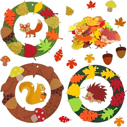 KIT DE BRICOLAGE COMPLET : Ce kit d'automne comprend 128 pièces, dont 3 guirlandes en feutrine, 3 animaux (hérisson, renard, écureuil), 100 pièces en papier mousse, 10 feuilles brillantes, 6 noix, 6 champignons et 3 rubans. Idéal pour des activités créatives avec les enfants.